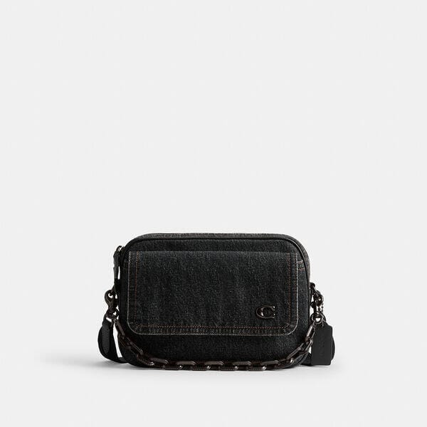 Description: For adventures near and far, our Charter is designed to make every journey, commute and errand feel like a first-class experience. This structured denim and refined leather Crossbody 24 has an outside flap-front pocket for easy access to essentials and a spacious zip compartment with room for a phone, wallet and more. Carry with the striking chunky chain strap or wear crossbody with the detachable strap. The distinctive silhouette is crafted with cotton sourced from farms that use regenerative agricultural practices-those that help to maintain and rejuvenate land, increase biological diversity and soil health, and could lead to increased carbon absorption. It reflects our ongoing commitment to helping reduce our impact on the planet.