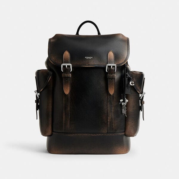 Description: Combining effortless style and major functionality, our Hitch takes you to work, weekends and everywhere in between. Crafted of buttery soft glovetanned leather specially treated with a rub-off technique to reveal the base color for a love-worn look, this organized backpack has space for a 15″ laptop, interior multifunction pockets to hold small accessories, and exterior side pockets for easy access to essentials. Finished with a cluster of distinctive Coach charms, it's a comfortable lightweight style with a durable microfiber lining and spacer mesh backing. Each bag is unique with no two exactly alike and will continue to develop more character over time.