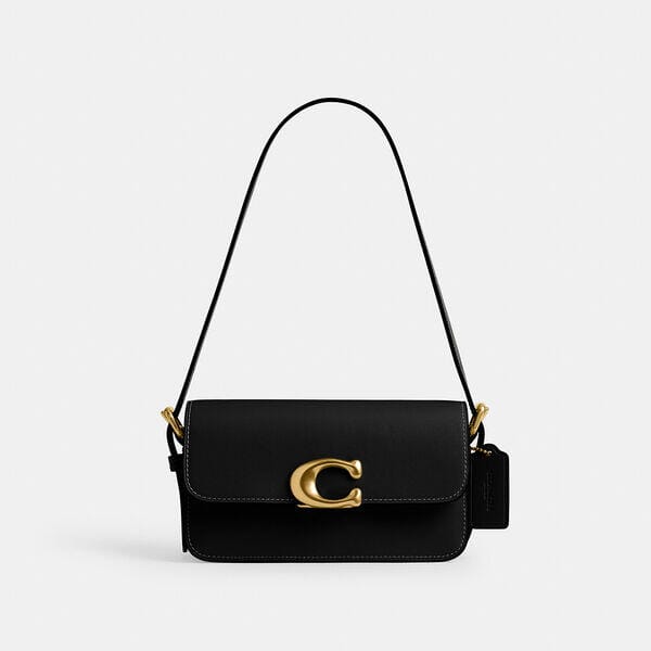 Description: Refined calf leather. Inside multifunction pockets. Snap closure, fabric lining. Detachable handle with 21cm drop. Outside open pocket. Detachable strap with 54.5cm drop for shoulder or crossbody wear. 20cm (L) x 11.5cm (H) x 5cm (W).