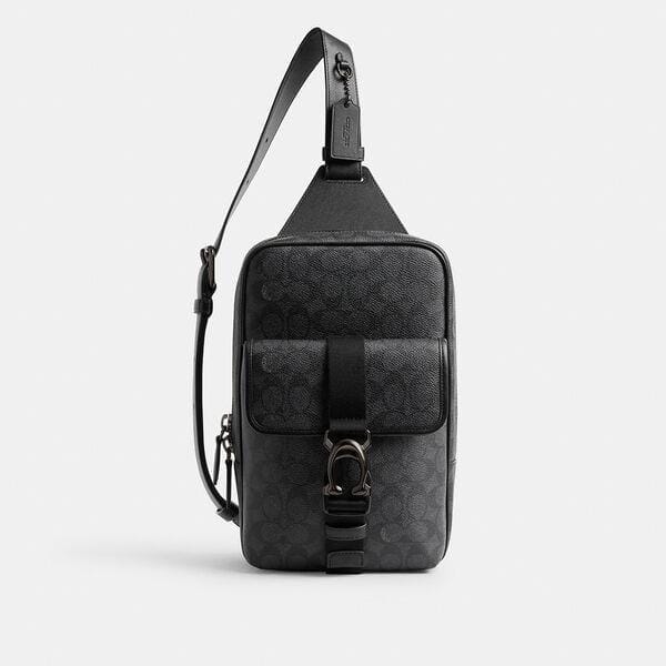 Description: Signature coated canvas and soft refined calf Leather. Inside multifunction pockets. Zip closure. Fabric lining. Outside flap and zip pockets. Adjustable shoulder strap for crossbody wear. 18cm (L) x 30cm (H) x 9cm (W).