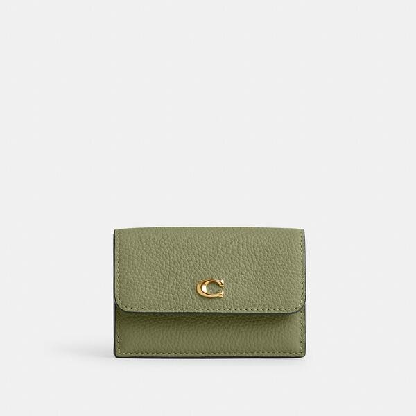Description: A compact design with optimal organization, this trifold wallet features a convenient outside coin pocket and opens flat for easy access to six card slots and a full-length bill compartment. Secured by a snap closure, it's crafted of polished pebble leather detailed with our Signature hardware.