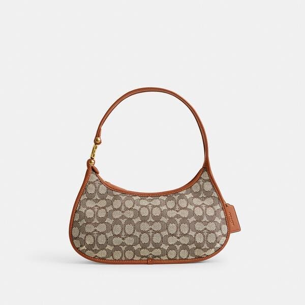 Description: Signature textile jacquard and glovetanned Leather. Inside snap pocket. Zip-top closure. Fabric lining. Handle with 21.5cm drop. 31cm (L) x 18.5cm (H) x 9cm (W).
