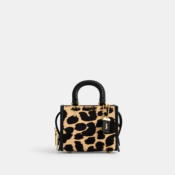 Description: Mini me. We made a scaled down version of our beloved Rogue bag with all of the same details as the original. This petite design is crafted of buttery soft glovetanned leather and luxe silky haircalf printed with a bold leopard pattern inspired by archival 1960s designs of Bonnie Cashin, our first lead designer. Finished with a detachable strap, it has room for cash, cards, lipstick, and keys. (Great things come in small packages.)