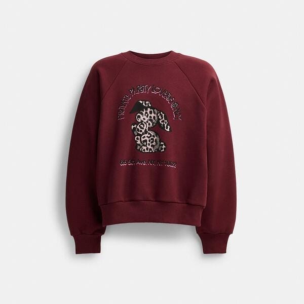 Description: Presenting the Lil Nas X Drop, an edit designed by Coach and curated by Coach Ambassador Lil Nas X, celebrating his unique and expressive approach to style. This boxy cotton-blend sweatshirt features playful graphics inspired by '90s underground rave posters. The raglan crewneck is finished with soft ribbed trim.