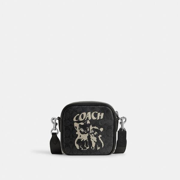 Description: Presenting the Lil Nas X Drop, an edit designed by Coach and curated by Coach Ambassador Lil Nas X, celebrating his unique and expressive approach to style. A design based on vintage camera bags, this Signature canvas silhouette is detailed with a graphic inspired by '90s underground rave posters and a playful nod to his new pet cats. It can be worn as a crossbody or use as a pouch to organize your phone, wallet, keys and other essentials in a larger backpack or bag.