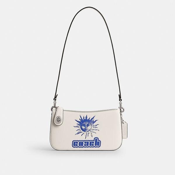 Description: Presenting the Lil Nas X Drop, an edit designed by Coach and curated by Coach Ambassador Lil Nas X, celebrating his unique and expressive approach to style. Referencing archival Coach Y2K designs but perfected for today, our swingy, slim Penn bag is effortlessly minimalist. Finished with our iconic turnlock closure on the zipper pull and a playful graphic inspired by '90s underground rave posters, the refined leather silhouette can be worn on the shoulder or carried as a clutch.