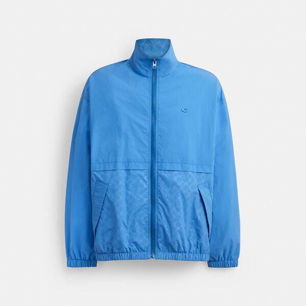 Description: Finished with our tonal Signature, this lightweight, water-resistant windbreaker is a great transitional piece. Crafted of recycled materials inspired by our commitment to rethinking and reducing our impact on the planet, the sporty zip-front style features a protective funnel collar and zip pockets to safely store small essentials.