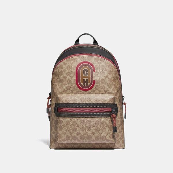 Description: Designed for adventure, our spacious, functional Academy backpack is designed with both a tech sleeve and a zip laptop pocket. Finished with our Coach retro graphic, it’s made from our Signature canvas with refined leather details.