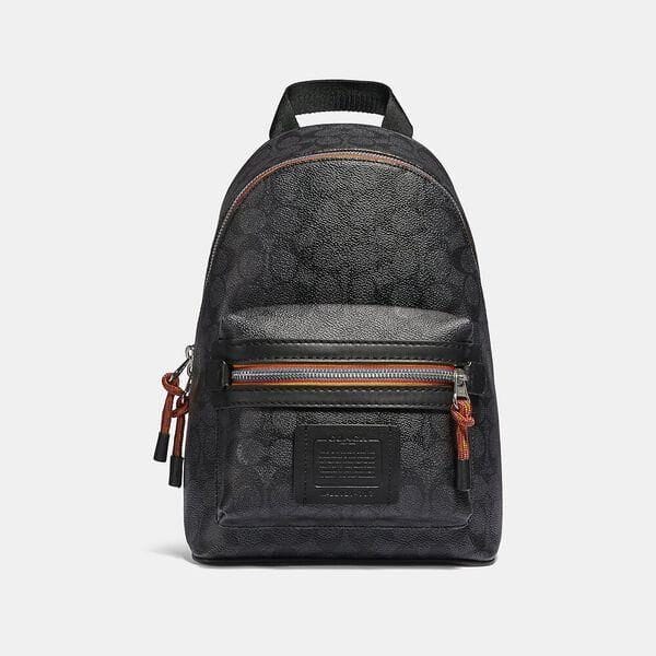 Description: Academy is designed for adventures far and near. Perfect for hiking, biking, or racing around town, the streamlined Pack has space for everyday essentials, including an iPad. It’s crafted of our Signature canvas with smooth leather details and zip closures accented with our sporty Varsity Stripe.