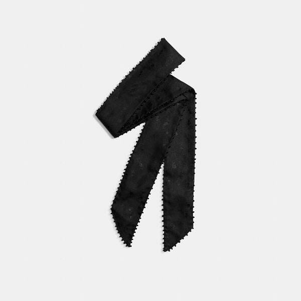 Description: An Art-Deco-inspired style, this skinny scarf features a subtle floral print and delicate bead trim. Crafted of lightweight silk it adds a luxe finish to any look.