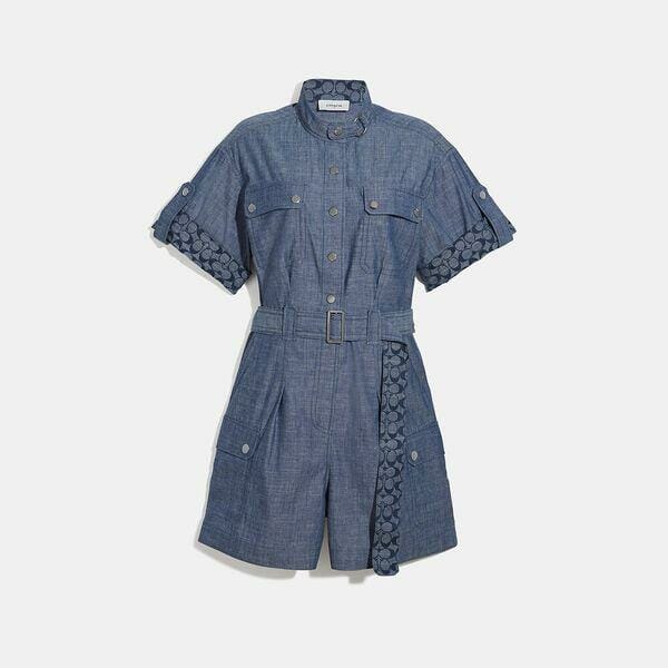 Description: Play all day in this breezy romper crafted of lightweight chambray trimmed with our Signature. The classic-fit, throw-on-and-go style is finished with a utility-inspired throat-latch and spacious flap pockets.