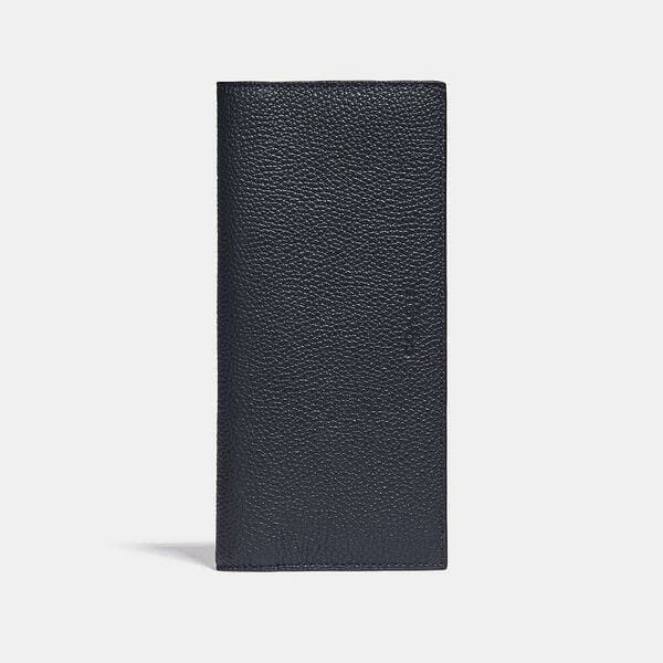 Description: Polished pebble leather and Signature coated canvas. Ten credit card slots. Full-length bill compartments. Zip coin pocket. 9cm (L) x 19cm (H) x 2cm (W).