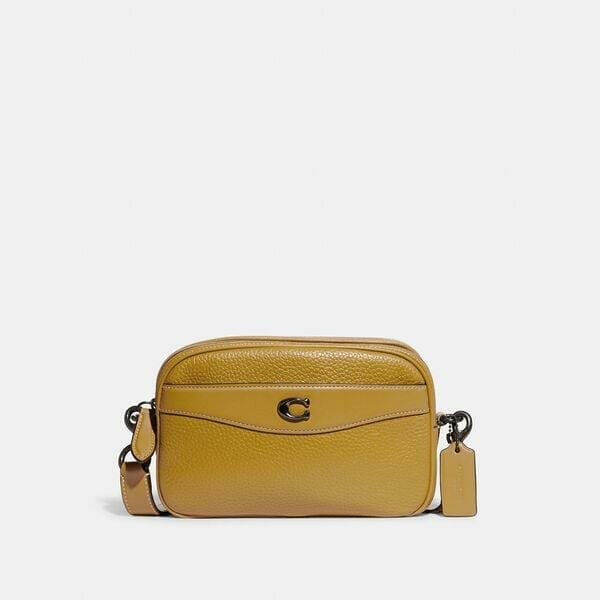 Description: Inspired by vintage camera bags, this simple silhouette unzips to reveal a spacious compartment. Finished with our Signature hardware, the minimalist, everyday design is crafted in a mix of soft pebble leather and refined leather. It features an easy-access exterior slip pocket and an adjustable strap to wear on the shoulder or crossbody.