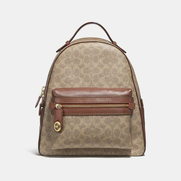 Description: Crafted of Signature canvas and calf leather trim, the Campus Backpack’s interior features room for a 13″ laptop, a zip pocket and multifunction pockets for easy organization. Wide padded straps make it super-comfy to carry.