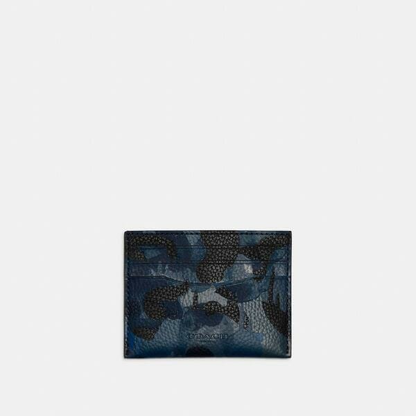 Description: This minimalist alternative to a wallet is crafted of polished pebble leather featuring our graffiti-inspired Camo print. The distinctive piece keeps cards organized in a design slim enough to slip into a back pocket.