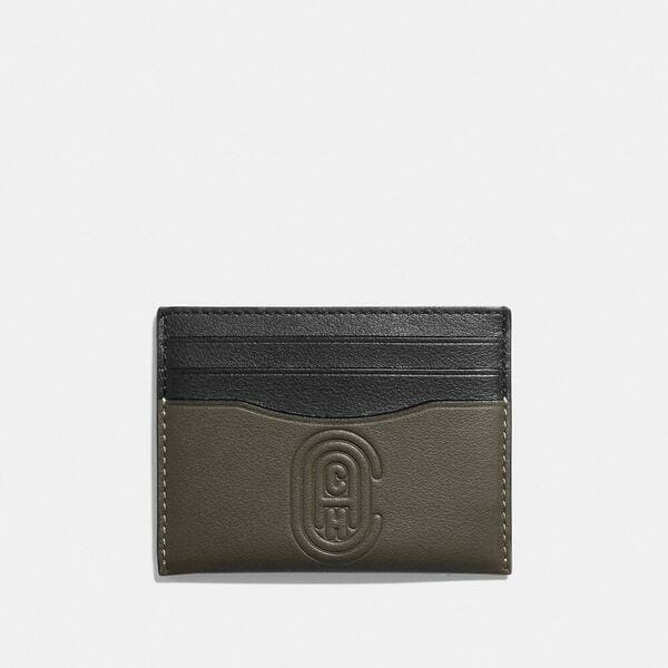 Description: This minimalist alternative to a wallet is crafted of smooth leather and embossed with our Coach retro graphic. The distinctive piece keeps cards organized in a design slim enough to slip into a back pocket.