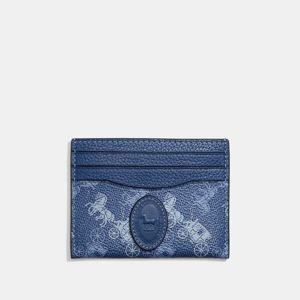 Description: Crafted of polished pebble leather and sturdy coated canvas featuring our iconic Horse and Carriage motif, this case is an easy way to organize business and credit cards. It’s finished with a patch based on a 1960s archival Coach design.