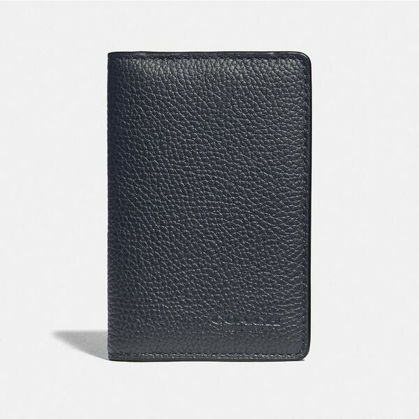 Description: Crafted of polished pebble leather with our Signature canvas, this slim bifold wallet organizes four cards in a minimalist silhouette.