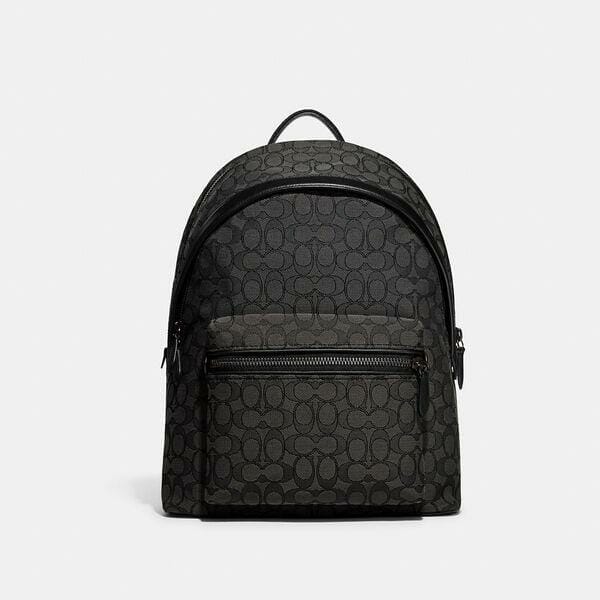 Description: Signature jacquard and refined calf leather. Inside zip, cell phone and multifunction pockets. Inside tech sleeve. Double zip closure, fabric lining. Top handle with 6.5cm drop. Outside zip pocket. Adjustable shoulder straps. Fits a 38cm laptop. 30cm (L) x 40cm (H) x 12.5cm (W).