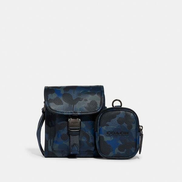 Description: For adventures near and far, our Charter is designed to make every journey, commute and errand feel like a first-class experience. Crafted of polished pebble leather featuring our graffiti-inspired Camo print, our multifunction Charter Crossbody can be carried multiple ways to suit your changing needs. The roomy North/South style features a detachable zip pouch that can be snapped to the strap, slipped into other bags, or clipped to a belt loop. This 2-in-1 silhouette can be worn on the shoulder or crossbody.
