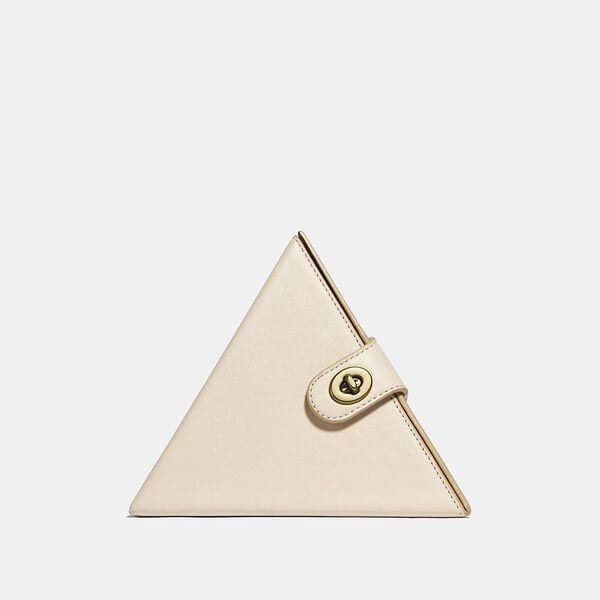 Description: Our City Blocks collection works all the angles with playful shapes inspired by the geometric forms of the New York City skyline. Think outside the box with this sleek Triangle Bag crafted in buttery soft glovetanned leather. Finished with our iconic turnlock closure, attach the adjustable strap for versatile crossbody wear.