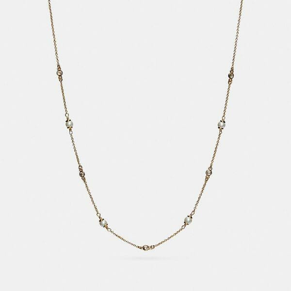 Description: “Brilliant crystals add a hint of sparkle to this delicate necklace featuring perfectly placed crystal pearls. The adjustable style is finished with a lobster clasp closure.
