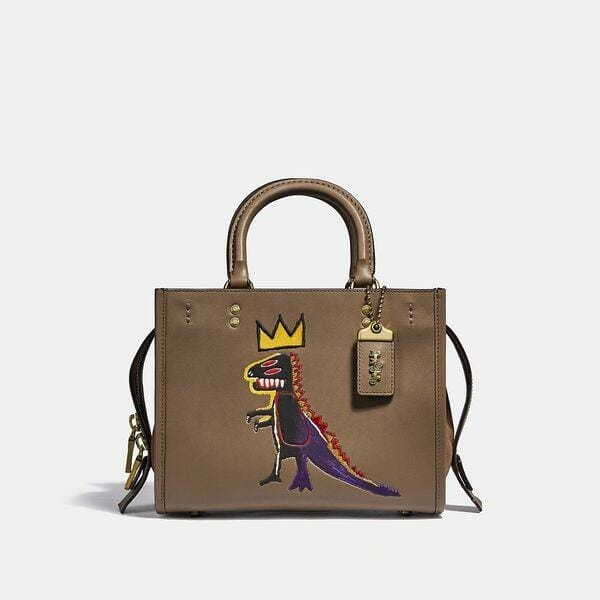 Description: Coach celebrates and honors renowned New York City artist Jean-Michel Basquiat with a special collection featuring elements from his revolutionary works of art. Inspired by free spirits, rebels and dreamers, our aptly named Rogue is a go-anywhere bag crafted in a mix of glovetanned leather and suede. Smaller than the original, the 25 features a secure interior zip compartment with two open compartments for easy organization and is finished with a bold motif from the iconic artist’s rebellious paintings. About the artist: Jean-Michel Basquiat is widely considered one of the most important artists of the 20th century. Known for his raw Neo-Expressionist pieces, Basquiat gained international acclaim in the late ’70s and ’80s for creating works of art that were both political and deeply personal. Featuring colorful abstract imagery and phrases inspired by African, Aztec, and Greek cultures, African American history and topics related to social justice, his pieces reflect the political and social turmoil of his generation that continues to this day.