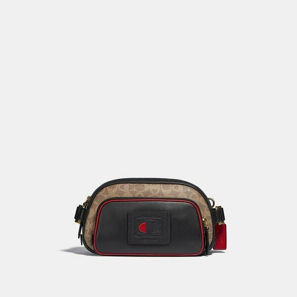 Description: A limited-edition collection celebrating the legacies of two American icons, this collaboration combines Coach craftsmanship with the heritage of Champion athleticwear. Keep your hands free and essentials organized with this Belt Bag crafted of glovetanned leather and a hybrid of our Signature canvas featuring the Champion “C.” A spacious two-compartment design, the luxe street-ready style easily holds a phone, wallet, earbuds and more.