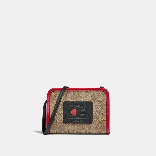 Description: A limited-edition collection celebrating the legacies of two American icons, this collaboration combines Coach craftsmanship with the heritage of Champion athleticwear. Crafted in a hybrid of our Signature canvas featuring the Champion “C” and finished with glovetanned leather details, this Rectangle Pouch keeps small essentials organized with inside multifunction pockets and room for a phone, keys and sunglasses. Sized to fit easily into a backpack, tote or bag, it converts to a crossbody with the adjustable strap.