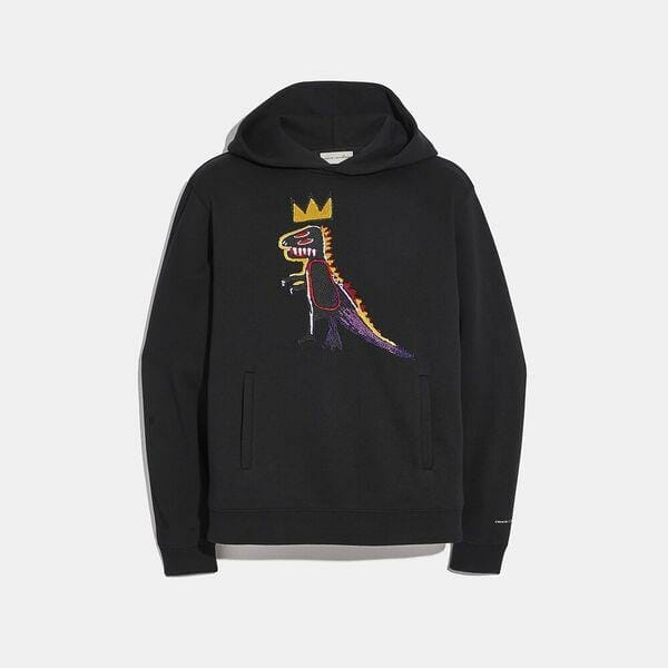 Description: Coach celebrates and honors renowned New York City artist Jean-Michel Basquiat with a special collection featuring elements from his revolutionary works of art. Finished with slip pockets and soft ribbed trim, this cotton-blend hoodie features a bold motif from the iconic artist’s rebellious paintings. About the artist: Jean-Michel Basquiat is widely considered one of the most important artists of the 20th century. Known for his raw Neo-Expressionist pieces, Basquiat gained international acclaim in the late ’70s and ’80s for creating works of art that were both political and deeply personal. Featuring colorful abstract imagery and phrases inspired by African, Aztec, and Greek cultures, African American history and topics related to social justice, his pieces reflect the political and social turmoil of his generation that continues to this day.