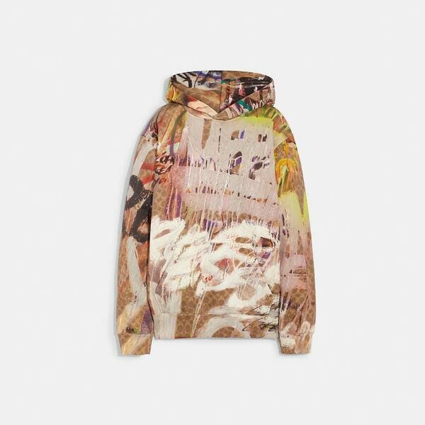 Description: Coach collaborates with celebrated graffiti artists Mikhail Sokovikov and Jason Aaron Wall of Mint + Serf in this special collection that captures the raw, dynamic energy of New York City. Crafted of certified organic cotton made without the use of harmful chemical fertilizers and pesticides, this hoodie is part of our commitment to rethinking and reducing our impact on the planet. The relaxed-fit style is finished with a kangaroo pocket and features a bold motif from the rebel artists’ compositions mixed with our Signature. About the Creatives: Artists Mikhail Sokovikov (aka, Mint) and Jason Aaron Wall (aka, Serf) met as teenagers in Bensonhurst, Brooklyn, and started using the streets of New York as their canvas. Believing that the beauty of graffiti lies in its illicit aggressiveness and nonconformity, they produce impromptu dynamic compositions that channel the inherent tension and defiant grit of the artform-and the city they call home. The capsule collection features paintings from Mint + Serf’s seminal series, Support, Therapy and Instability (2012-2016) created at The Broadway Chapter in collaboration with Christopher Johnson, Pablo Power, and the PPP!