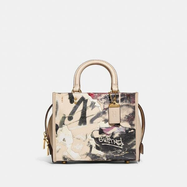 Description: Coach collaborates with celebrated graffiti artists Mikhail Sokovikov and Jason Aaron Wall of Mint + Serf in this special collection that captures the raw, dynamic energy of New York City. Inspired by free spirits, rebels and dreamers, our aptly named Rogue is a go-anywhere bag crafted in a mix of natural pebble leather and buttery soft glovetanned leather featuring a bold motif from the rebel artists’ compositions with an embroidered accent. Smaller than the original, the 25 has a secure interior zip compartment with two open compartments for easy organization. About the Creatives: Artists Mikhail Sokovikov (aka, Mint) and Jason Aaron Wall (aka, Serf) met as teenagers in Bensonhurst, Brooklyn, and started using the streets of New York as their canvas. Believing that the beauty of graffiti lies in its illicit aggressiveness and nonconformity, they produce impromptu dynamic compositions that channel the inherent tension and defiant grit of the artform-and the city they call home. The capsule collection features paintings from Mint + Serf’s seminal series, Support, Therapy and Instability (2012-2016) created at The Broadway Chapter in collaboration with Christopher Johnson, Pablo Power, and the PPP!