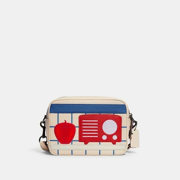 Description: Coach pays homage to legendary New York City artist Tom Wesselmann with this playful, Pop Art-inspired collection. A modern design based on an archival silhouette, our Flight Bag is ready to take you anywhere. Crafted of buttery soft glovetanned leather featuring a stylized kitchen still life, this compact design features inside multifunction pockets for organization, outside pockets for easy access to essentials and secures with a zip closure detailed with our iconic turnlock for a heritage touch. About the artist: A master of vivid color and larger-than-life scale, Tom Wesselmann is widely considered one of the most dynamic American artists of the twentieth century. Rejecting abstract expressionism in favor of striking representations of the female form, still life and landscapes, Wesselmann has a penchant for finding the extraordinary in the everyday.