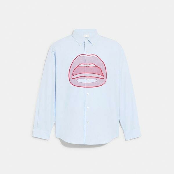 Description: Coach pays homage to legendary New York City artist Tom Wesselmann with this playful, Pop Art-inspired collection. Crafted of certified organic cotton made without the use of harmful chemical fertilizers and pesticides, this oxford shirt is part of our commitment to rethinking and reducing our impact on the planet. The classic-fit design features a chest pocket and a bold, expressive lip motif. About the artist: A master of vivid color and larger-than-life scale, Tom Wesselmann is widely considered one of the most dynamic American artists of the twentieth century. Rejecting abstract expressionism in favor of striking representations of the female form, still life and landscapes, Wesselmann has a penchant for finding the extraordinary in the everyday.