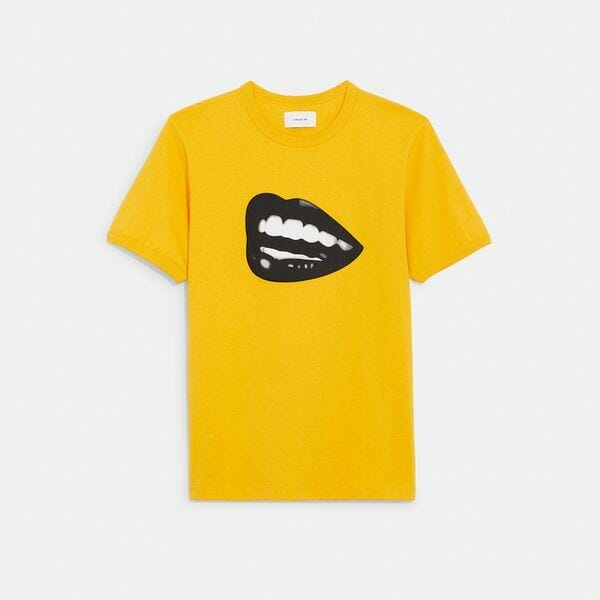 Description: Coach pays homage to legendary New York City artist Tom Wesselmann with this playful, Pop Art-inspired collection. Inspired by our commitment to rethinking and reducing our impact on the planet, this classic-fit T-shirt is crafted of certified organic cotton made without the use of harmful chemical fertilizers and pesticides. The crewneck is detailed with a bold, expressive lip motif. About the artist: A master of vivid color and larger-than-life scale, Tom Wesselmann is widely considered one of the most dynamic American artists of the twentieth century. Rejecting abstract expressionism in favor of striking representations of the female form, still life and landscapes, Wesselmann has a penchant for finding the extraordinary in the everyday.