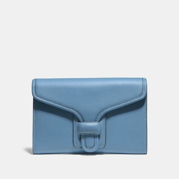 Description: Glovetanned leather. Four credit card slots. Inside zip and multifunction pockets. Slide tab closure. Outside slip pocket. 18.5cm (L) x 12.5cm (H) x 2cm (W).