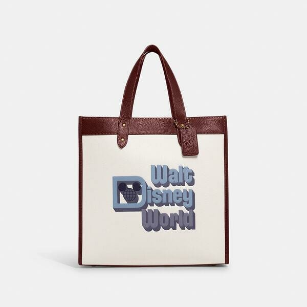 Description: This year, Coach celebrates the 50th anniversary of Walt Disney World with a collaboration combining the legacy of our craftsmanship with the magical world of Disney. Relive special moments and create new ones with this Disney X Coach Field Tote featuring a retro-style graphic. Crafted of polished pebble leather, this versatile carryall has space for everything you need-with an interior zip pocket to hold small essentials. Attach the lightweight webbing strap to wear on the shoulder or crossbody.