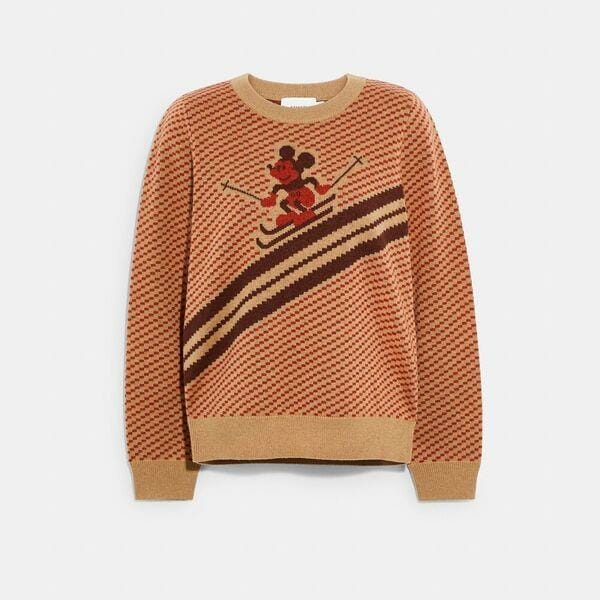 Description: The one-and-only Mickey Mouse races downhill in this special collaboration where beloved Disney characters meet iconic Coach design. The sporty, classic-fit wool crewneck is finished with soft ribbing at the collar, cuffs and hem.