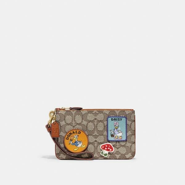 Disney X Coach Small Wristlet In Signature Textile Jacquard With Patches