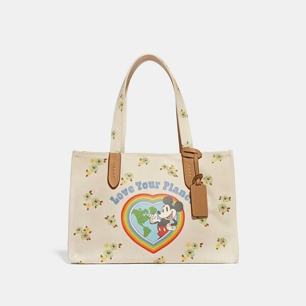 Disney X Coach Tote 30 In 100 Percent Recycled Canvas With Floral Print And Mickey Mouse