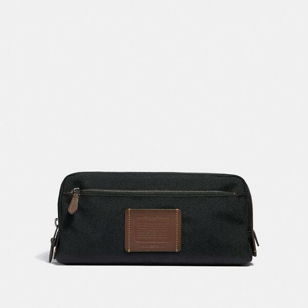 Description: Thoughtfully designed, this dual compartment case is perfectly sized to organize toiletries and small essentials. Finished with refined leather trim, it is made from Cordura® fabric, a durable material that is resistant to tears, scuffs and abrasions.