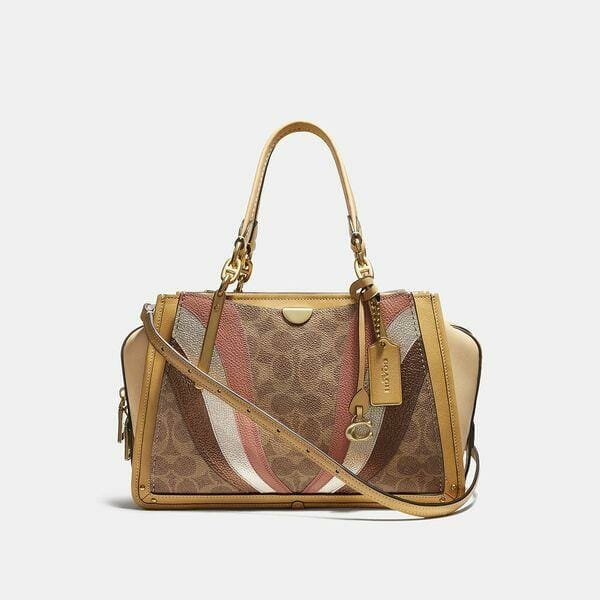 Description: The Dreamer is our new take-everywhere bag, inspired by the endless possibilities of New York City. Crafted in our Signature canvas and smooth leather detailed with a mix of luxe leathers in an elegant wavy patchwork, our spacious tote features a three-compartment design, modern hardware and a Signature charm.