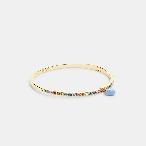 Description: Spread some love. This hinged bangle features vibrant pavé stones and a bright enamel charm detailed with our Signature.