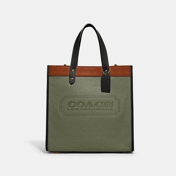 Description: From busy workdays to fun-filled weekends, our Field Tote has space to hold everything you need-with an interior zip pocket to hold small essentials. Featuring our Coach Badge, this versatile carryall is crafted of colorblock polished pebble leather with velvety suede details. Attach the lightweight webbing strap to wear on the shoulder or crossbody.