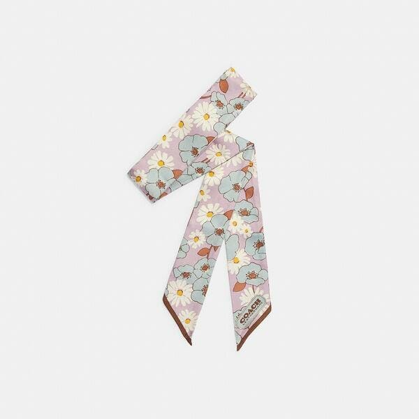 Description: Featuring our vivid vintage-inspired floral print, this skinny scarf is crafted of lightweight silk. Finished with our Coach Badge for heritage style, it can be worn around your neck or tied on a favorite bag for a touch of color.