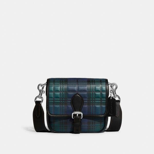 Description: A well-organized, hands-free style for travel or work, the mini Frankie Crossbody 18 holds all the essentials with room for your phone, wallet, keys and more. Crafted of our buttery soft glovetanned leather featuring a rich heritage plaid, it’s finished with a buckle-detail magnetic closure, detachable crossbody strap and an outside pocket for easy access items.