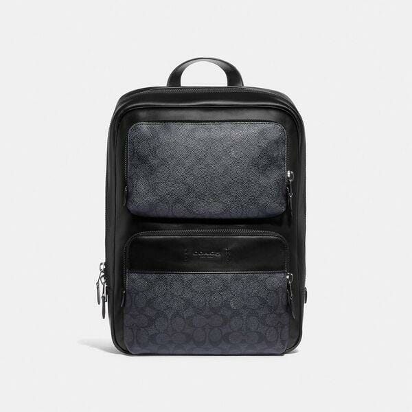 Description: A bag as distinct as its namesake city, the Gotham is a sleek, streamlined style that means business. Crafted of our Signature canvas and refined leather, this structured backpack has space for a 15″ laptop, interior multifunction pockets and two exterior zip pockets for easy organization. It’s finished with a breathable mesh back and adjustable shoulder straps.