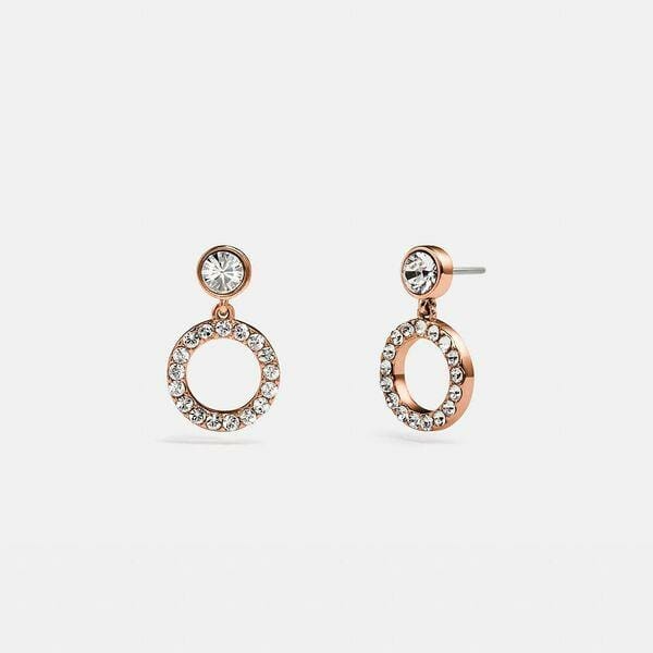 “These drop earrings are a dazzling pick for day or night. They feature a pavé ring glittering below a brilliant crystal stud.