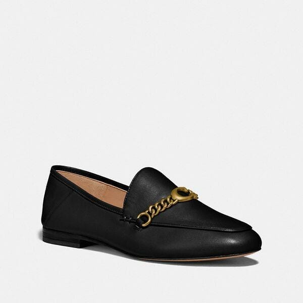 Description: A streamlined design, this versatile shoe features a fold-down heel to be worn as both a loafer and a mule. Crafted of smooth leather, it’s detailed with a polished curb chain accented with our Signature.