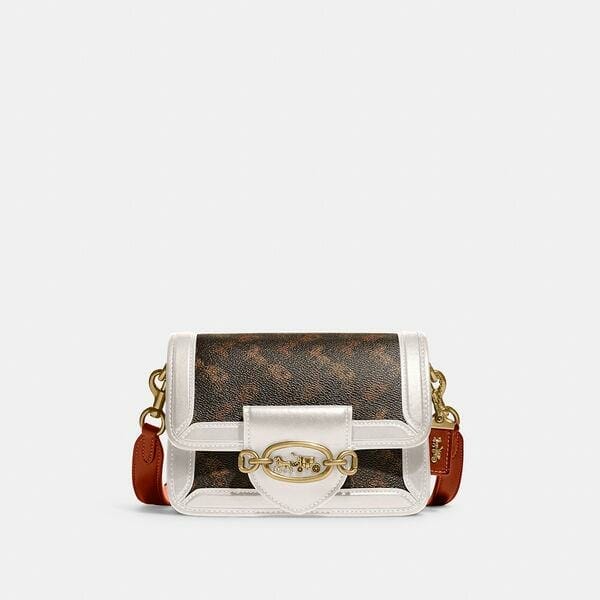 Description: Conquer the day (or night) with our perfectly organized Hero bag. Crafted of refined leather and sturdy coated canvas featuring our Horse and Carriage motif, this compact crossbody has interior pockets for organization and pleated gussets that fan out for a roomier shape when you need some extra space. The iconic Coach Horse and Carriage, which was first introduced in the 1950s, accents the snap closure.